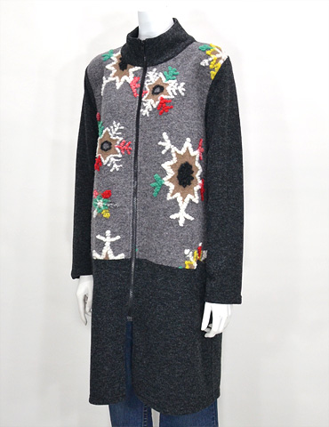 素材:刺繍ジップアップ ロングカーディガン
