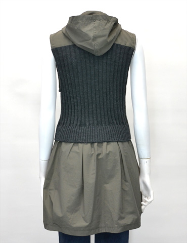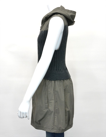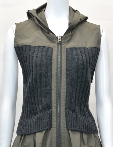 素材:タッサー×リブニット フード付ロングジレ